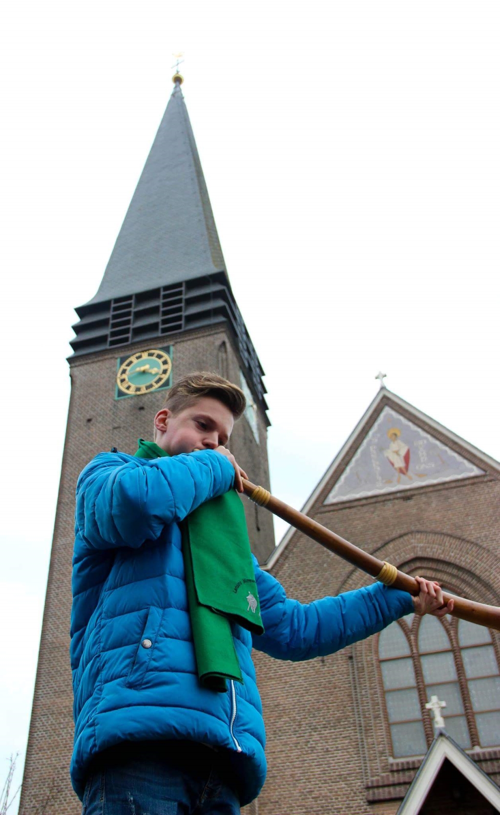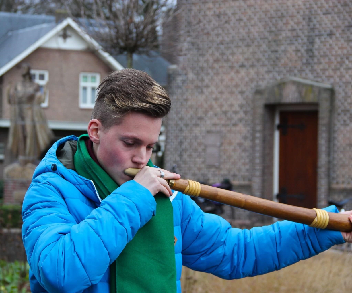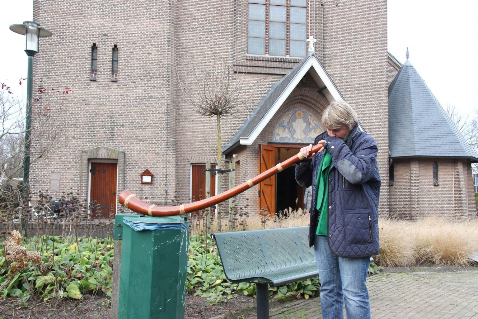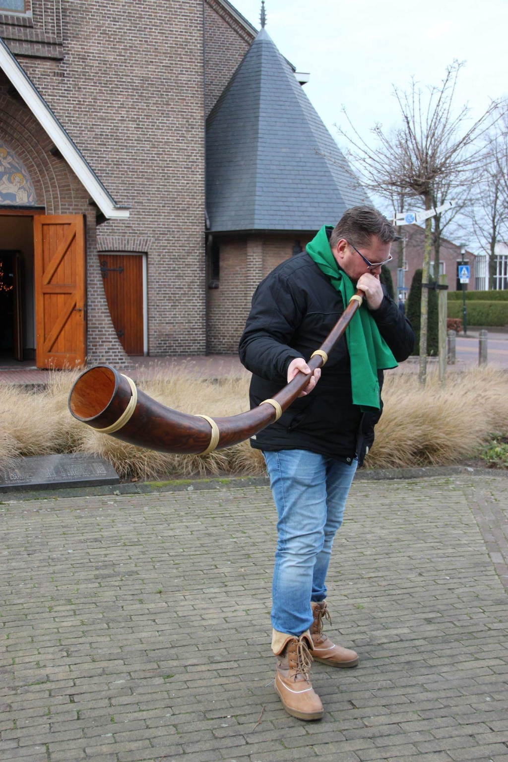 Met de midwinterhoorn wandeling hebben we geblazen bij de kerk in Geesteren.