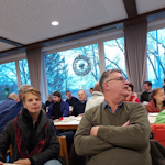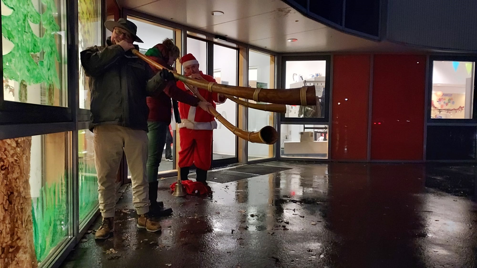 Lansink Mirreweenterhoornbloazers bij de oefenavonden in het buurtcentrum, bij de Midwinterhoorn wandeling in Neuenhaus (Dld) en een basisschool